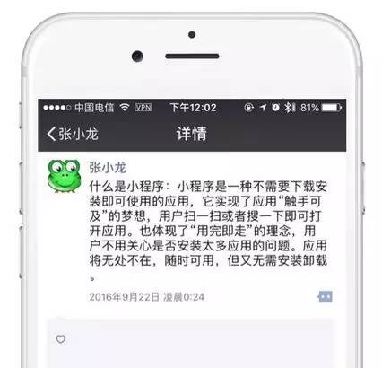 而張小龍的最新顛覆性的表現(xiàn),就是小程序,這次,他連用戶粘性都不要了:不需要下載,只需要搜索或掃描二維碼就可以打開,用完即走!